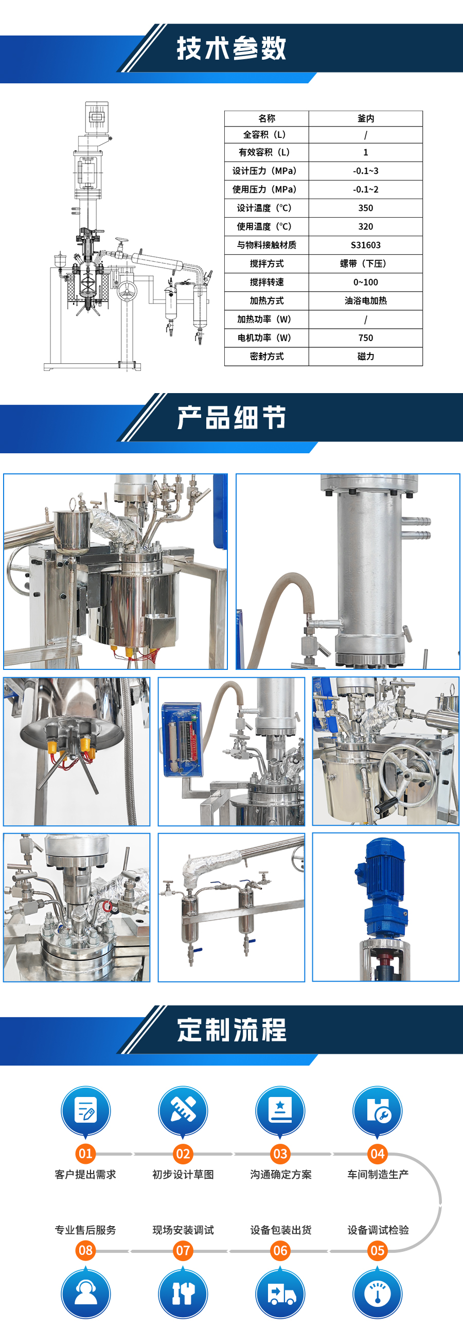 高溫聚酯磁力實(shí)驗(yàn)室反應(yīng)釜 - 非標(biāo)定制參數(shù)