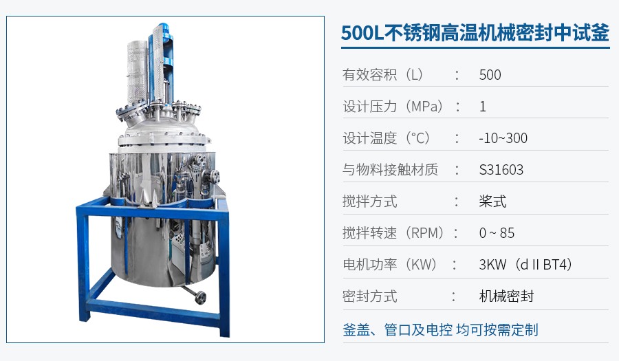 中試機械密封反應釜 - 非標定制參數(shù)